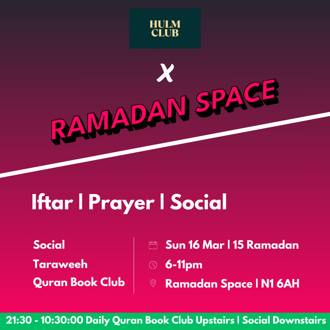 Ramadan Space x Hulm Club iftarAt Ramadan Space >> 3 mins from Old Street.