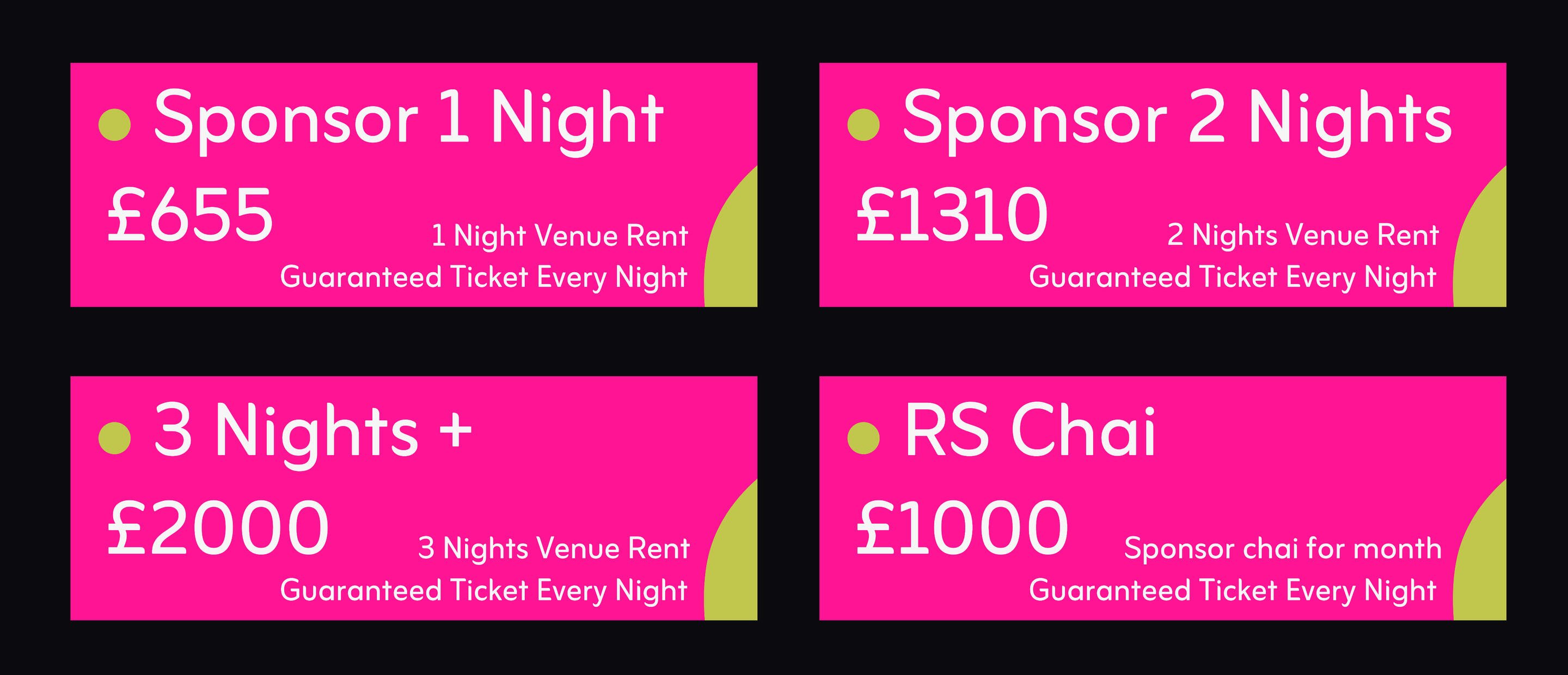 Sponsor a night £300 (4 left):